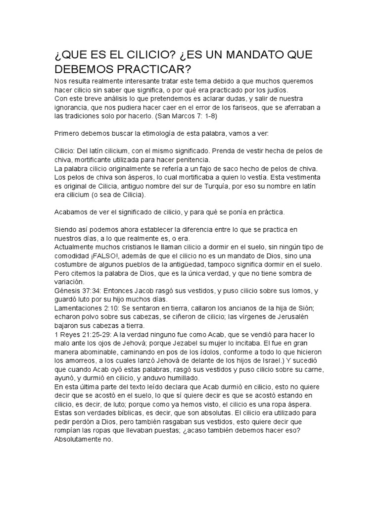 David lo hizo más de una vez, y como lo apuntamos al inicio este tenía muchos significados y símbolos de los. Que significa el cilicio palabra usada por. Algunas órdenes cristianas como los cartujos o. El cilicio era una tela áspera, generalmente hecha de pelo de cabra, de color negro.